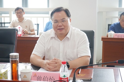 王选祥热烈欢迎曾伯怡一行的到来,并向其简要介绍了湖南黄金基本情况。他表示,近年来,湖南黄金受省委委托,与冷水江共同推进砷碱渣无害化治理项目,双方合作友谊不断加深。湖南黄金锑品产业规模庞大,金锑分离生产技术领先,砷碱渣无害化处理环保技术成熟,“十四五”期间将力争成为锑品行业亚洲乃至世界冠军。冷水江享有“世界锑都”美誉,锑矿资源丰富,愿双方共同落实省政府日前印发的《支持有色金属资源综合循环利用产业延链强链的若干政策措施》文件精神,在锑矿开采冶炼、精深加工、环保治理、对外贸易等领域探索更多合作可能,以冷水江的资源优势和湖南黄金的技术优势,共同促进地方经济发展、生态文明建设、产业延链强链,共为践行“三高四新”战略、造福资江百万人民、建设现代化新湖南作出新的更大贡献。