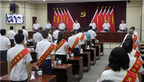 大会在庄严的《国歌》声中拉开帷幕,全体与会人员重温入党誓词。集团党委副书记、董事刘炜宣读表彰决定,号召各级党组织和广大党员以先进为标杆,为集团建设国内一流省级国有资本运营平台作出新的更大贡献。6名优秀共产党员代表、4名优秀党务工作者代表和6名先进基层党组织代表上台领奖。