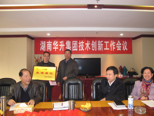 近日,湖南华升集团公司召开了技术创新工作会。会议总结了2012年度技术创新工作,表彰了一批技术创新先进集体和先进个人,并对2013年技术创新工作会议进行了具体工作的部署。湖南华升集团公司董事长刘政、总经理李郁、副总经理陈湘生、总工程师张小静出席会议并讲话,各子公司分管技术创新工作领导、及相关负责人、先进个人参加了会议。