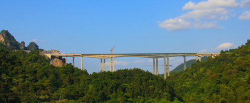 左江特大桥主桥为85+160+85米双肢薄壁刚构连续箱梁结构,左右幅分离。该桥于2015年8月实现全桥贯通,是全线四座特大桥第一个实现全桥贯通的大桥,为后续的路面施工提供了方便。