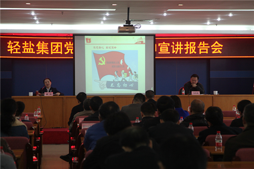 为认真学习贯彻党的十九大精神,切实把全体干部职工思想统一到党的十九大精神上来。11月28日上午,湖南省轻工盐业集团有限公司在集团公司九楼会议室举行了党的十九大精神宣讲会。党的十九大代表、省妇联党组书记、主席姜欣以《深入贯彻学习党的十九大精神》为主题做了报告宣讲,集团公司党委书记、董事长冯传良主持宣讲会。集团(股份)公司高管领导、在长单位班子成员及总部全体党员和其他单位党员共120人参加此次会议。 会上,姜欣指出,党的十九大是在全面建成小康社会决胜阶段、中国特色社会主义进入新时代的关键时期召开的一次十分重要的大会,是在新的历史起点上开启党和国家事业新征程的一次大会,是一次不忘初心、牢记使命、高举旗帜、团结奋进的大会,在党和国家发展史上具有重大里程碑式意义。