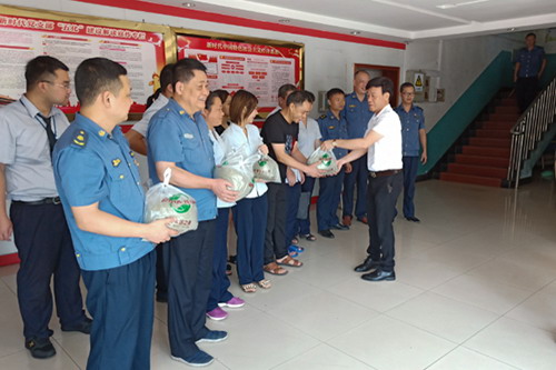 炎热酷暑下,一线员工们坚守在工作岗位上,挥汗如雨,他们的健康和安全牵动着领导的心。7月26日,现代投资潭耒分公司经理张建军、副经理许文、冯仕清、纪委书记兼工会主席曹政荣分别到各基层单位开展“送清凉”活动。