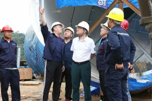 2020年5月5日,湖南高新创投集团党委书记、董事长汪学高一行深入高创新能源公司褒忠山项目调研工程建设情况,亲切慰问“五一”期间坚守在施工一线的项目人员及施工队伍,要求统筹抓好疫情防控和企业发展,在确保工程质量和守住安全底线的基础上尽早实现项目并网投产,为高创新能源今年年底完成80万千瓦装机容量战略目标任务贡献力量。