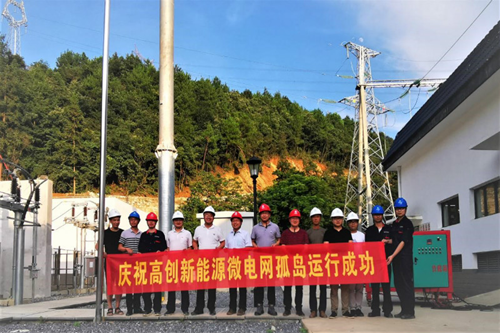 2020年7月30日16点35分,在电科院等专家的评定和见证下,高新创投集团所属湖南高创新能源有限公司自主研发的“高创孤岛微电网系统”在褒忠山风场内搭建成功,首台风电机组顺利并入“高创孤岛微电网”发电,向升压站自供清洁电能,试验获得成功,开启了风场建设安装、并网测试双线并行的新模式,成为国际首创的陆地风力发电孤岛微电网系统。