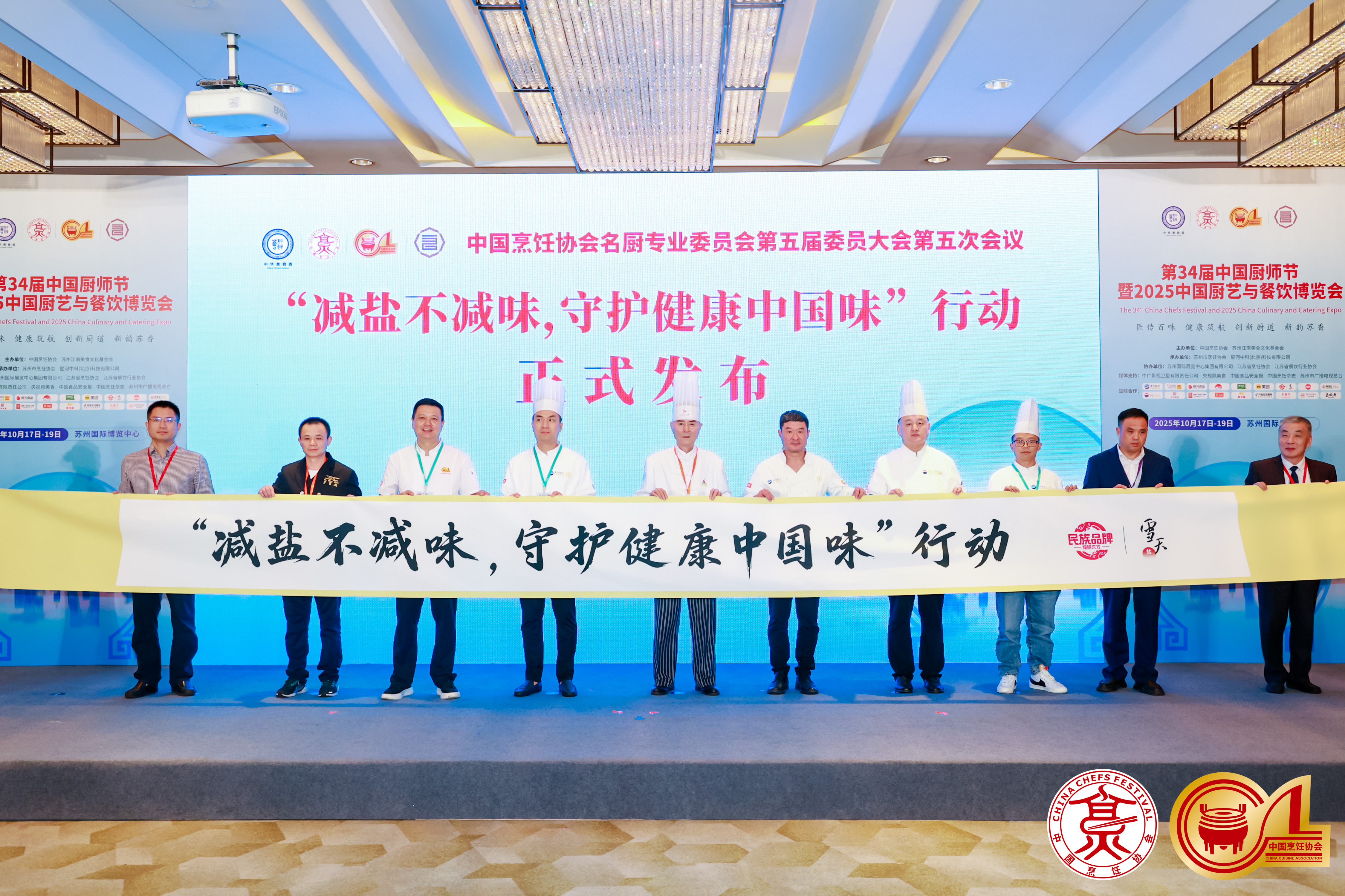 雪天盐业携手中国烹饪协会名厨专业委员会及八大菜系代表大师,共同启动“减盐不减味,守护健康中国味”倡议。