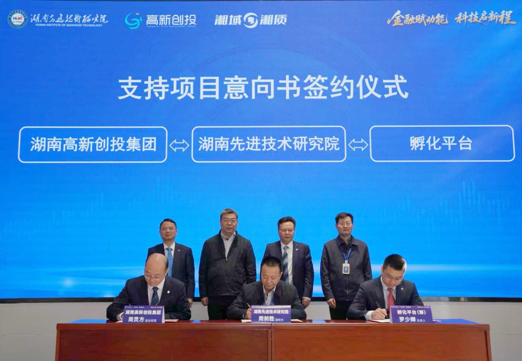 签约仪式上,在全体与会嘉宾的共同见证下,湖南先进技术研究院与湖南高新创投集团签订合作备忘录共同成立孵化平台公司。双方将围绕深化科技金融支持科技创新、推动孵化前沿科技成果等工作开展合作,创新推出“先孵化、后转化”模式。湖南先进技术研究院五大科研团队分别与集团孵化基金、孵化平台公司签署孵化项目意向书,标志着新一批优质科技成果将通过孵化平台,加速从研究基础转化为研究成果,实现从实验室走向生产线。