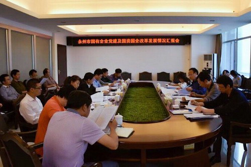 在永州市国资委,调研组一行听取了永州国资国企改革发展工作情况及国企党建工作情况汇报。近年来,永州市国资委全力打响“党建提质、对接提速、监管升级、改革收官、脱贫攻坚、安全维稳、作风整治、创先争优”八大战役,始终坚持问题导向,坚持改革创新,着力强化基层党组织的政治功能、服务功能,聚焦主责主业、强化担当作为,全面开创国企党建工作新局面。永州市国资委取得的成绩和经验得到了杨平副主任的充分肯定,他表示,省国资委将继续加强与永州国企党建和国资国企发展改革工作的联系和指导,加大对永州对接央企、省企工作的支持协调力度,支持和帮助驻永省属企业做大做强做优。他要求,要理顺国资监管体制和国企党建管理模式,明确领导班子配备和管理职权,进一步压实国企党建工作责任,推动国企改革发展进一步深入。