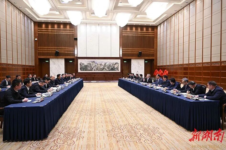 陈得信、朱可炳感谢湖南省委、省政府对中国五矿发展的关心支持,表示期待双方在矿产资源开发、金属冶炼及加工、新能源新材料、科技创新等领域进一步深化合作,坚持同题共答,携手推动央地互利合作、共赢发展。
