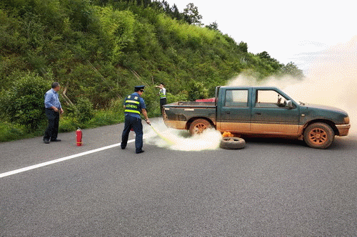 演练人员赶到现场后,交通管制组迅速做好事故现场安全措施并对长韶娄高速韶山支线由南往北方向K6+100-K7+800段采取交通管制借道分流。随后各小组以最快的速度开展各项工作,交通管制组协调路面临时管制、设置导流带、实施借道通行;信息联络组在沿线各收费站显示屏、情报板发布事故分流提示信息;事故抢险组对起火车辆进行紧急处置,并设置警戒区域;自燃车辆明火被完全扑灭以后,道路救援组立即对事故车辆实施救援。