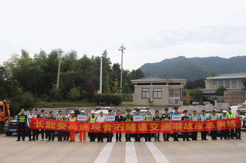 演练完毕,各队伍对此次应急演练进行了总结,找出存在的不足和改进措施。李红光指出,此次演练较好的完成了突发事件清障救援的演练任务,有效地检验了观音石隧道的消防系统完备性,展现了各相关单位联勤联动、快速响应能力。