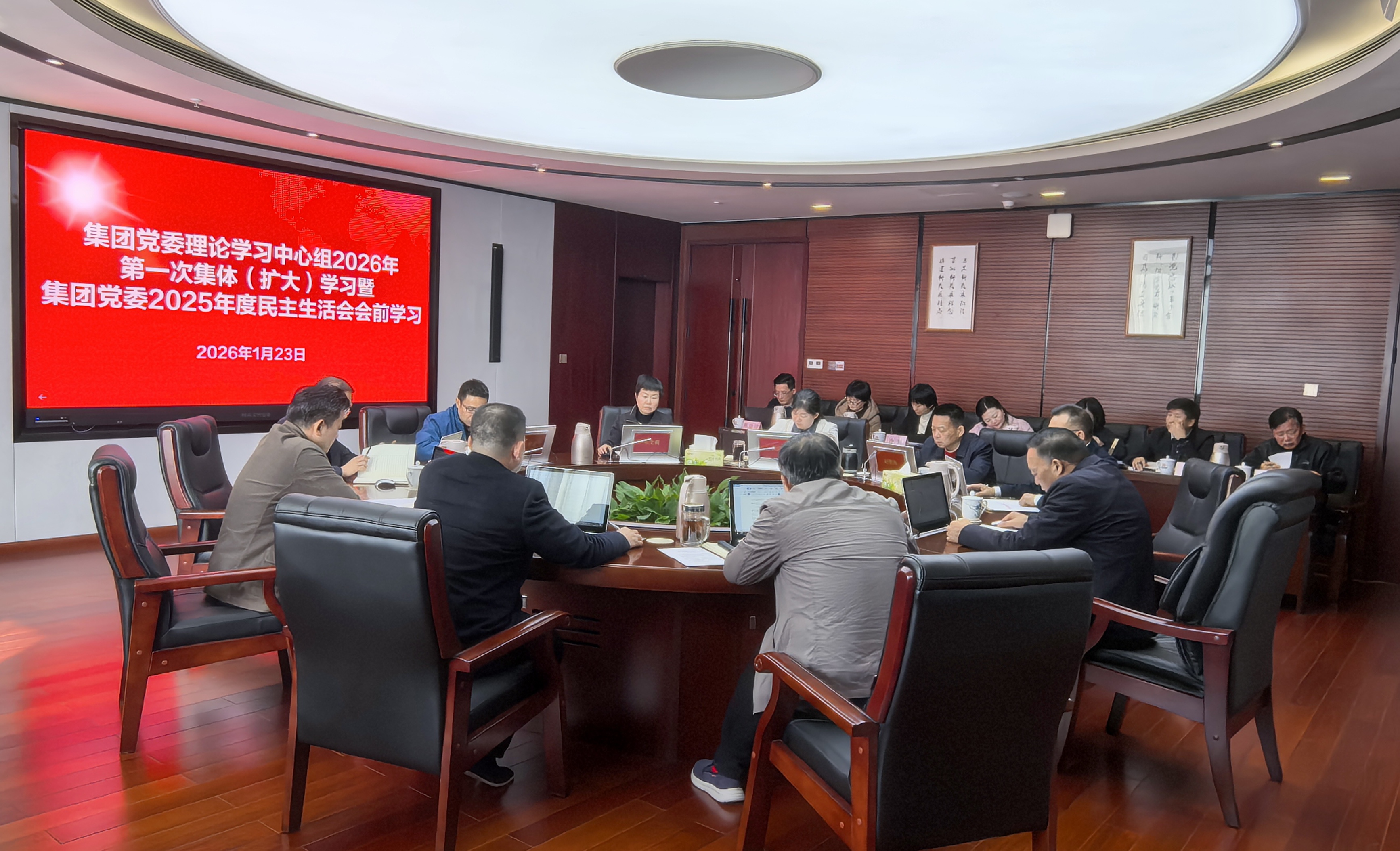 2026年1月23日,湖南医药发展投资集团党委理论学习中心组开展2026年第一次集体(扩大)学习暨集团党委2025年度民主生活会会前学习。集团党委书记、董事长胡新保主持学习并讲话。集团领导班子成员、高管、总部各部门负责人参加学习并研讨交流。