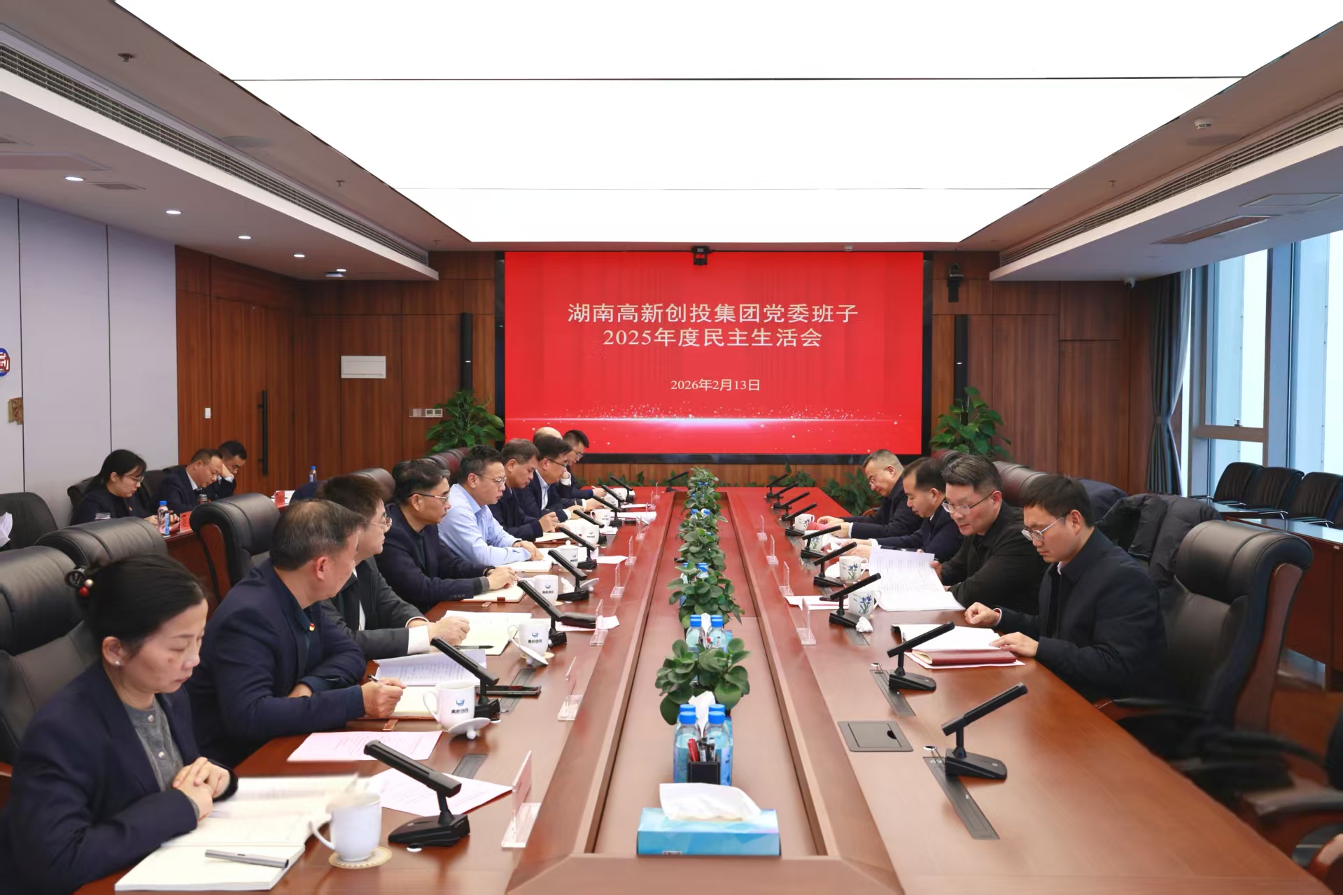 2026年2月13日,湖南高新创投集团党委班子召开2025年度民主生活会。会议旨在深入学习贯彻习近平新时代中国特色社会主义思想,全面贯彻落实党的二十届四中全会精神,推进作风建设常态化长效化,以优良作风凝心聚力、真抓实干,奋力开创集团“科创产投联动,高新融创未来”新篇章。省国资委党委委员、副主任毛育新到会指导。集团党委书记、董事长李艾东主持会议。