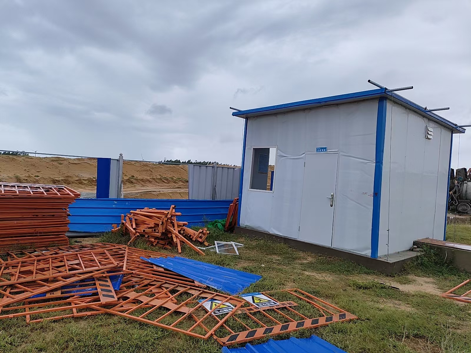 台风过后,海南项目组迅速对建设工地进行安全隐患排查,修复受损设施。由于风力强劲,项目部围挡损坏约1千米,地下室进水砂约1米深,板房配电房及广告喷绘等受到不同程度的受坏。因应对积极,人员和财产未受实质性损害,现基地正有序复工中。