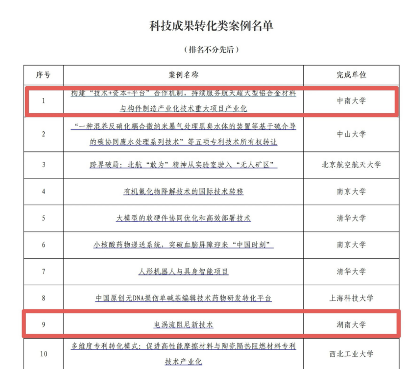 近日,国家教育部首次发布“2025高校科技成果转化典型案例名单”,全国共有41个案例入选。湖南高新创投集团旗下中创空天承接的钟掘院士团队“航天超大型铝合金材料与构件制造产业化技术”成功入选,为湖南仅有的2个入选案例之一。